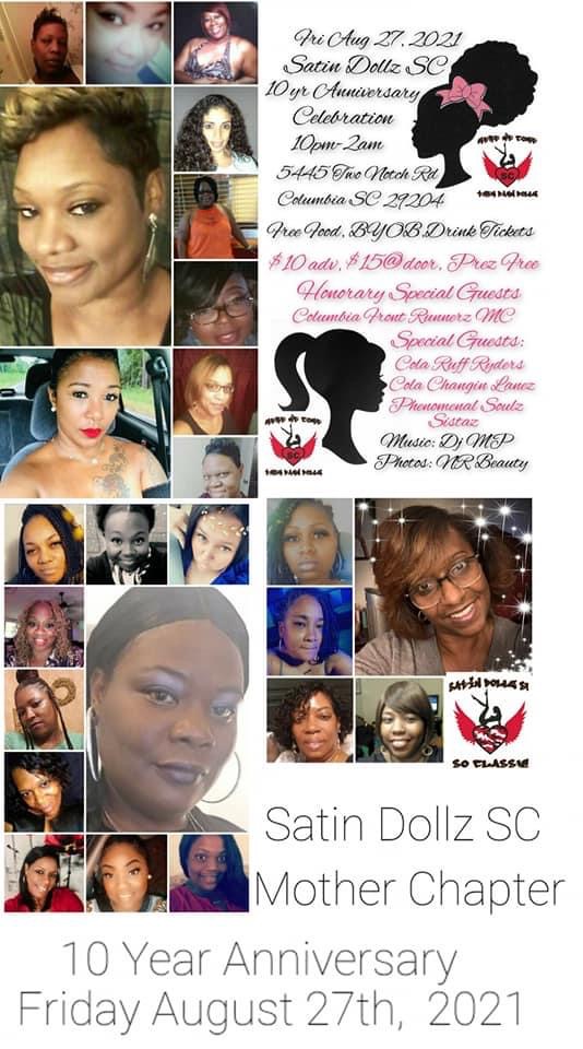 WE ARE SATIN DOLLZ SOCIAL CLUB, COLUMBIA CHAPTER (MOTHER CHAPTER), THE CLUB WAS ESTABLISHED IN 2011, FOUNDED BY LESLIE SPRY/PRESIDENT AND CO-FOUNDED BY CHERYL BOYD/VICE PRESIDENT.
